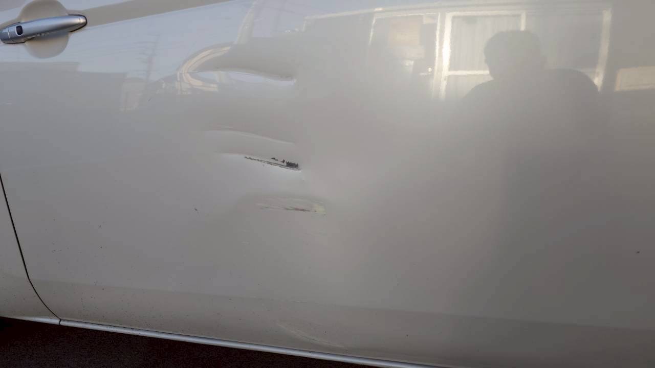 スライドドアに凹みとキズがあり、